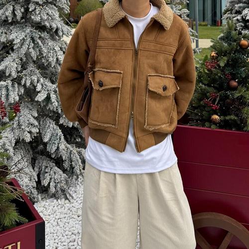 [아리엘스타일]스웨이드 크롭 포근양털 카시엘양털무스탕자켓