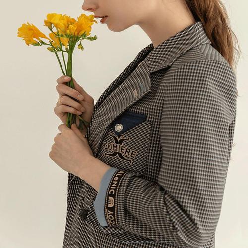 [르니앤맥코이]자수 레터링테잎 체크 크롭 자켓 ML04JK208HJY