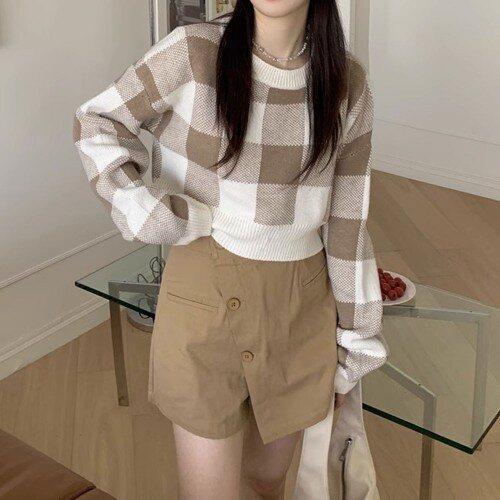 [블로썸스틸]크롭 체크패턴 니트 2color DK-0489