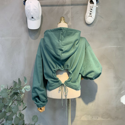 씨샵인더룸 / 웨버 백 트임 스트링 크롭 후드 티셔츠 4color