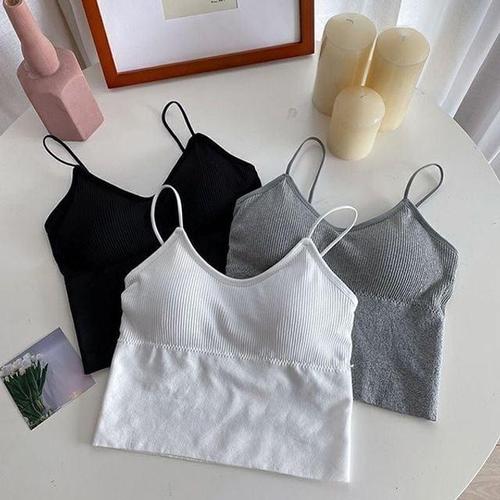 데일리브라렛 내장캡 크롭핏 여자 캐미솔 트리플컬러 스트랩탑 WFK1X3R