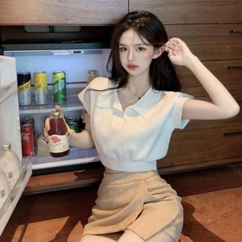 [엄지척]크롭 반팔티셔츠 요키치 카라 브이넥 500278_19601718_667501