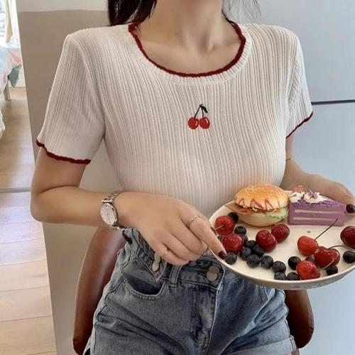 [엄지척]여성 상큼 체리 가득 반크롭 반팔티셔츠 프릴 반팔티_19609916_667501