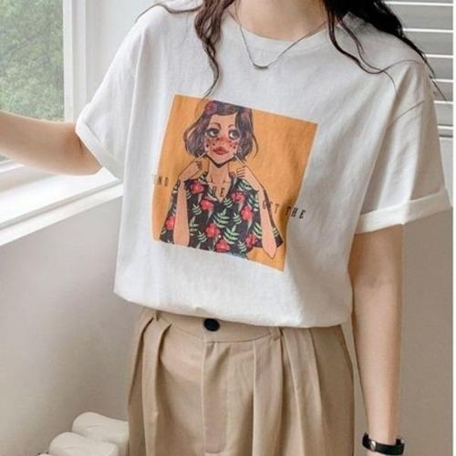 [에이치플러스몰]여성반팔 반팔티셔츠 나시티 크롭티 일러스트 반