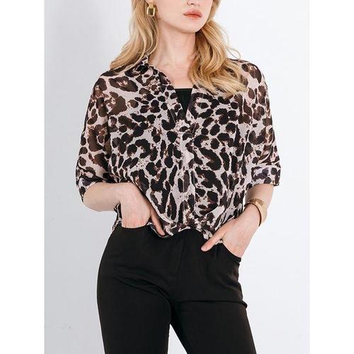 [막스까르띠지오]레오파드 쉬폰 크롭 셔츠 SET