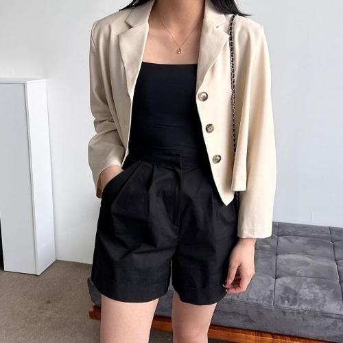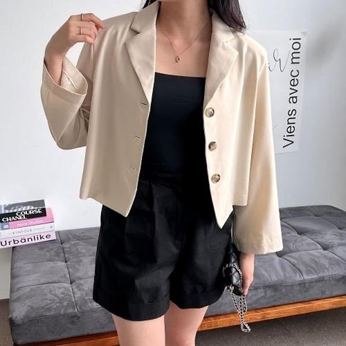 [엄지척]여성 린넨 버튼 크롭 반팔자켓 여름 정장 자켓_19650936_667501