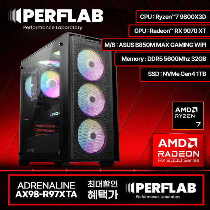 PERFLAB 라이젠7 9800X3D RX 9070 XT 16GB 32GB 1TB 게이밍 컴퓨터 데스크탑 조립 PC