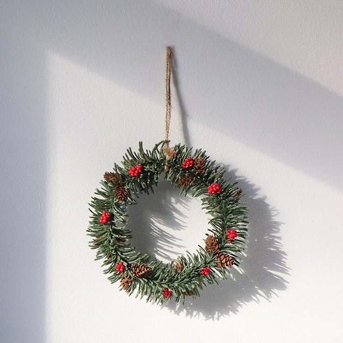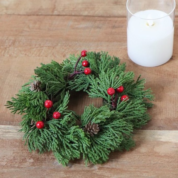 트리빌리지 크리스마스 측백 조화 캔들 홀더