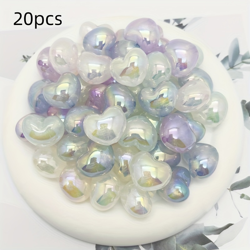 TEMU 20pcs 아크릴 UV 도금된 어두운 곳에서 빛나는 하트 비즈, DIY 보석 만들기, 열쇠고리 및 공예용 22mm 장식 비즈 모음집