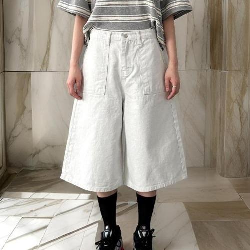 [다잇템][다잇템] 여자 크림색 넓은 버뮤다팬츠 주머니 에이라인 반바지_20752317_588872