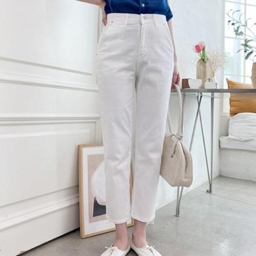 [다잇템]여성 흰색 크림색 코튼 베이직 청반바지