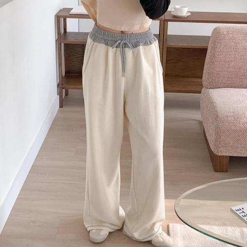 [다잇템][다잇템] 여자 넓은 크림색바지 배색트레이닝 자수 면바지_19884930_588872