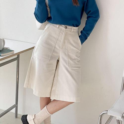 [다잇템]여성 큰주머니 넓은 FW 하프 골덴 반바지