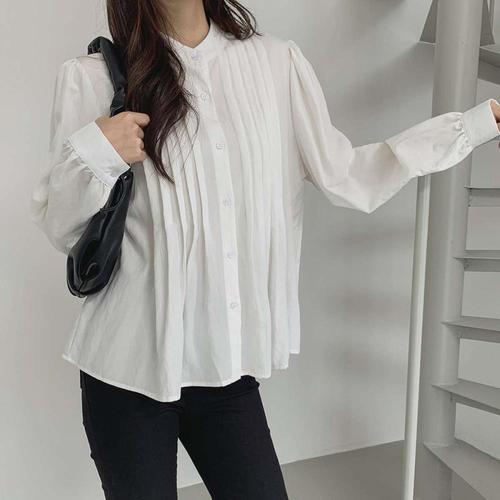 패션고리 봄 여성 차이나넥 클래식 벌룬소매 데일리 셔츠 9425