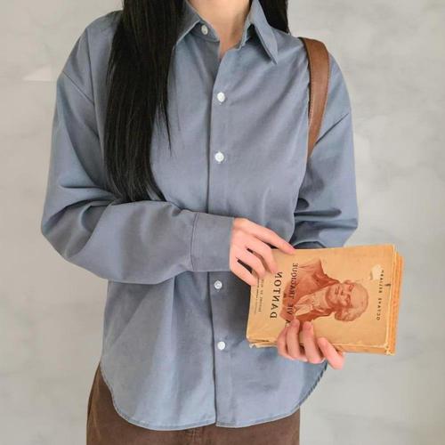 박시핏 클래식 심플한 청 칼라블라우스 WFJIWKZ