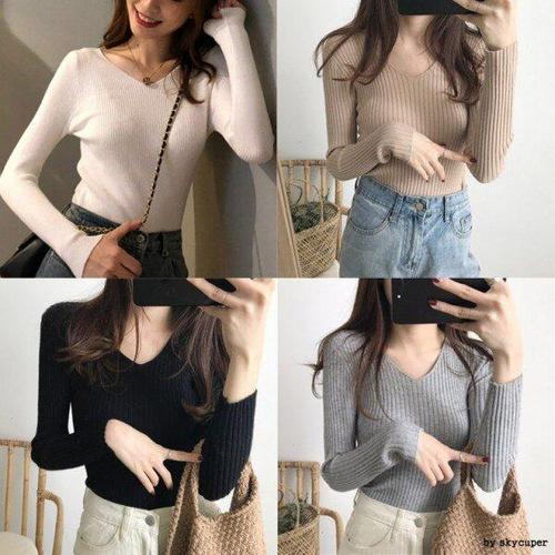 남여 긴팔 프리미엄 브이넥 무지 티셔츠 S-2XL