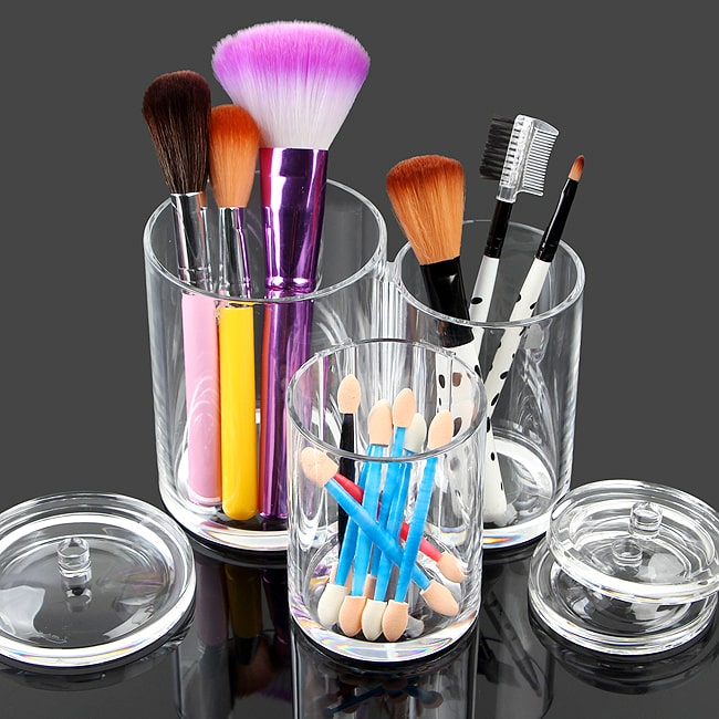 원통3칸 아크릴 화장품정리함(뚜껑有)/소품수납보관함