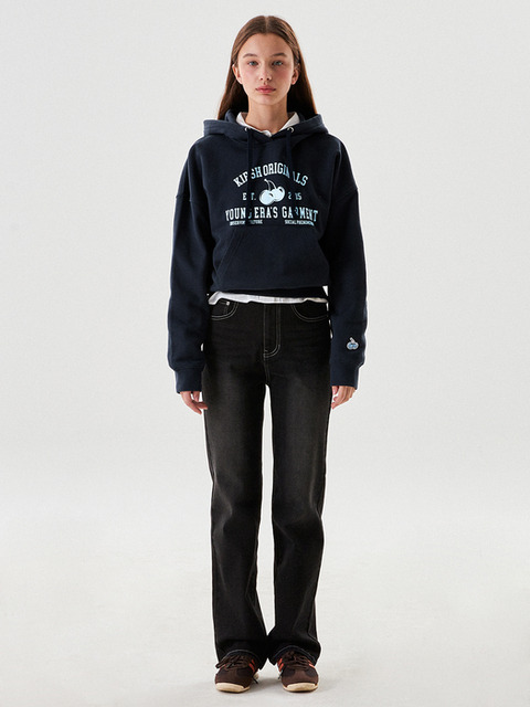 [키르시] 체리 아치 로고 크롭 후드 [다크 네이비]