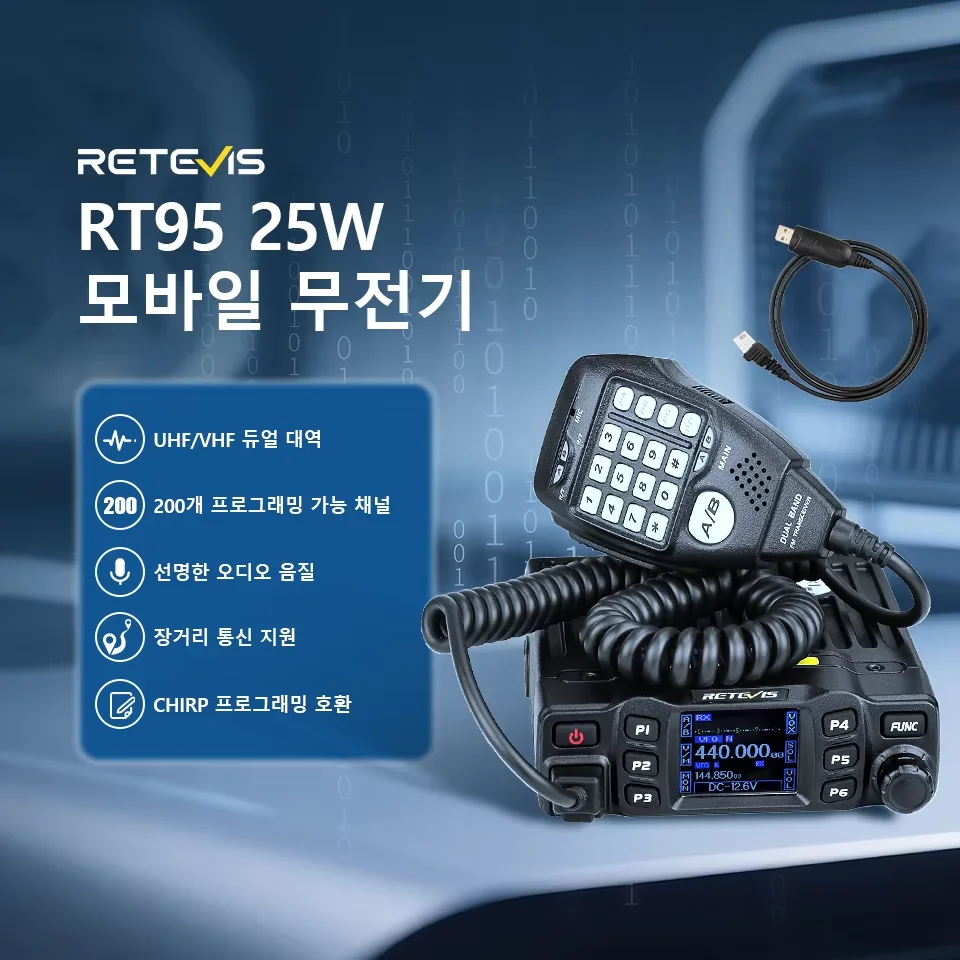 Retevis RT95 아마추어 햄 무전기 차량용 듀얼밴드 무전기 햄 아마추어무선 UHF VHF 워키토키 Ham Radio Walkie Talkie 아마추어햄무전기차량용 25W