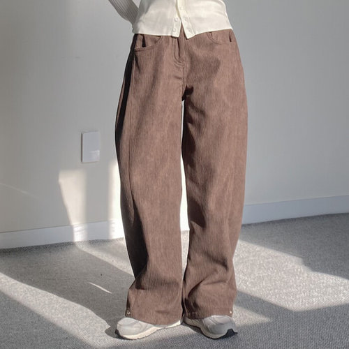 코듀로이와이드팬츠 커브드팬츠 키작녀기모바지 기모코듀로이