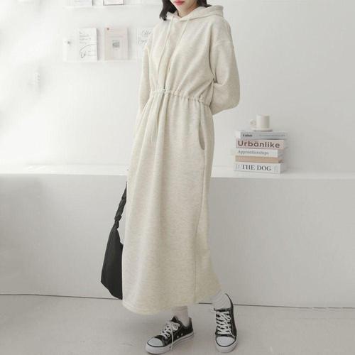 데이트룩 캐주어룩 스트링 옆선 트임 후드 원피스 WFGPTCJ