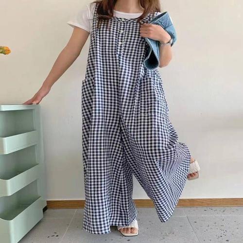 [HYIJY92L_4B]베이직 여름오버롤 라운드넥 와이드 점프슈트