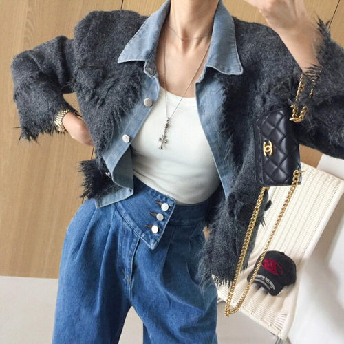 아이미마인 / 체스트 카라 데님 레이어드 루즈핏 니트 청자켓 (2color)