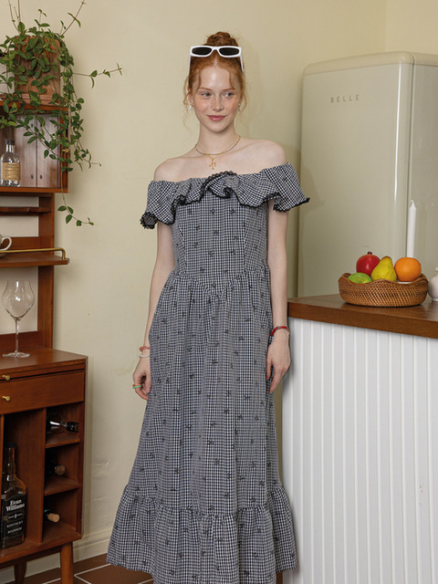 TEMU 스타일 레이스 서스펜더 원피스 여성용 여름 섹시 브이넥 체크무늬 스커트 허리 기품 있는 화이트 롱 스커트