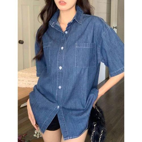[키첼]보이시 데님 반팔 셔츠
