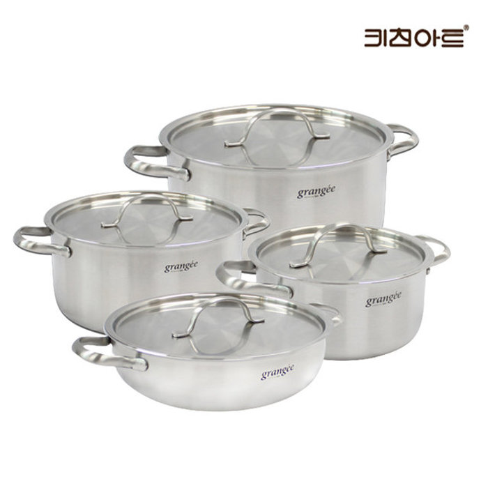 키친아트 그랑제 인덕션 통3중 304스텐 냄비세트 4종A 편16+양18+20+24