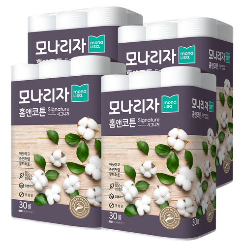 (방송중4만원대) 모나리자 홈앤코튼 화장지30롤(3겹)X4팩 120롤