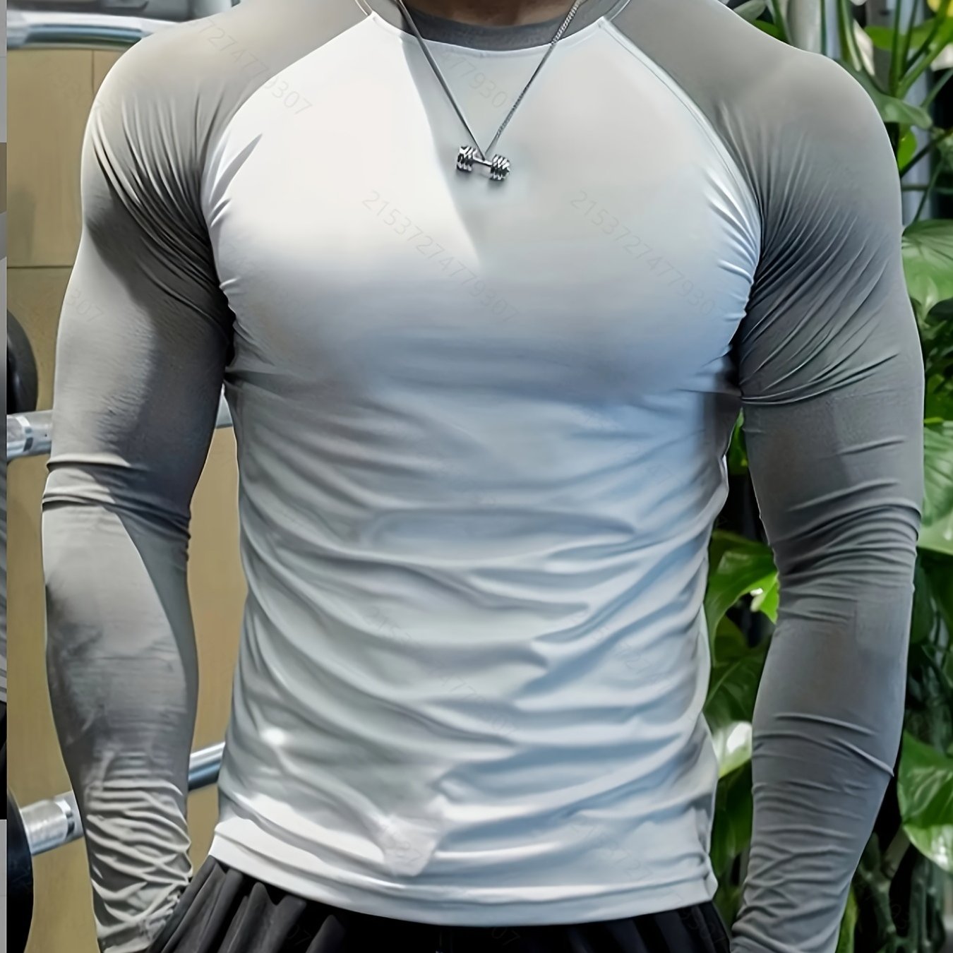 TEMU 남성용 고탄력 속건성 컴프레션 긴팔 트레이닝 셔츠 | 피트니스 농구 축구 사이클 베이스 레이어 코치 탑 - 흡습 및 통기성