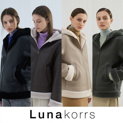 [초특가][루나코어스] 25FW 호주산 양모 100% FAUX 레더 후드 무스탕