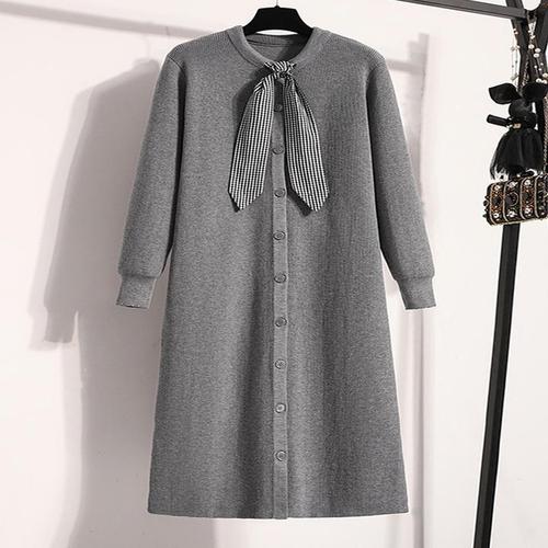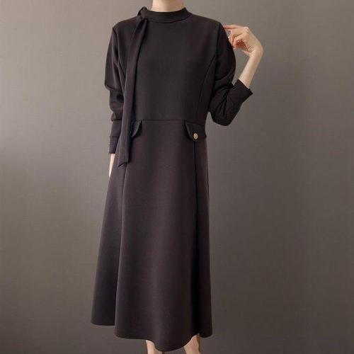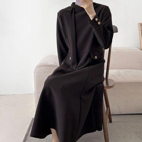 [신상오픈런]가을 하객룩 롱원피스 여성용 스카프 타이와 금장 버튼 디자인