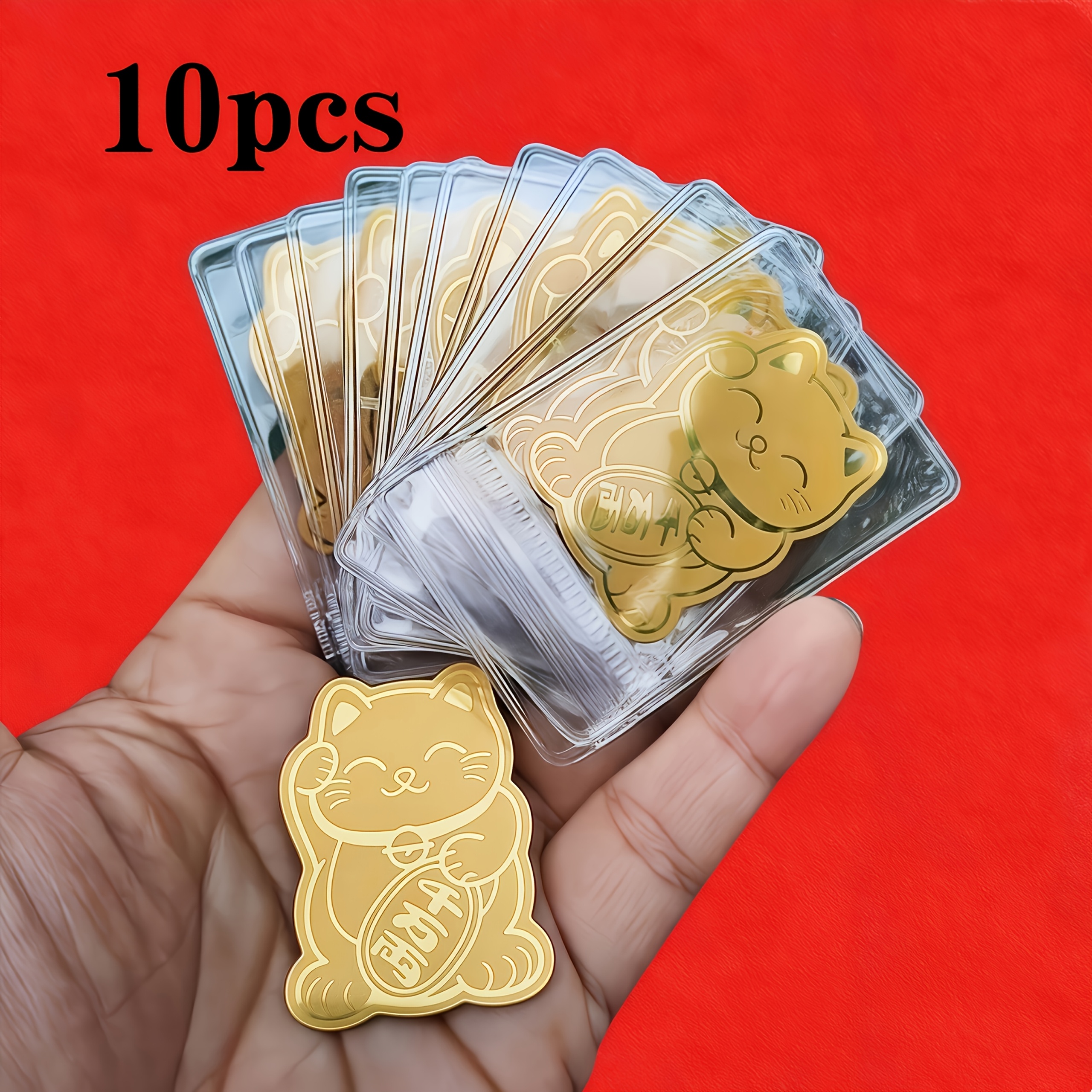 TEMU 10개입 자체 접착식 재사용 가능한 행운의 고양이 스티커 - 반짝이는 부자 고양이 폰, 태블릿, 노트북용 - 플라스틱 데칼, 쉽게 붙이고 떼는 행운 스티커