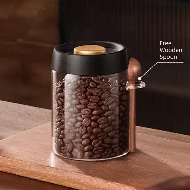 TEMU 500/800/1200ml - 고품질 붕규산 유리 진공 보온병, 나무 국자 포함 - 커피원두 및 주방 보관용, 투명하고 튼튼함 - 신선도와 풍미 보존에 최적
