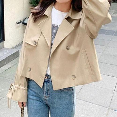 [셀러허브_여성트랜드패션]Rly 더블 트렌치 코트 숏 바바리 자켓 베이지