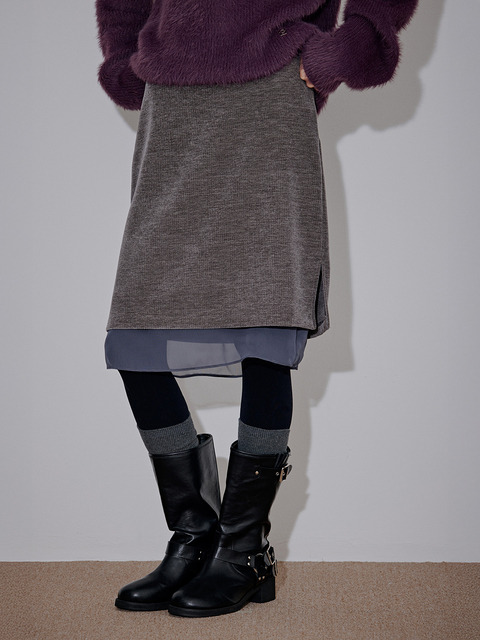 [탑걸] 벨벳 레이어드 미디 스커트_T521BT729