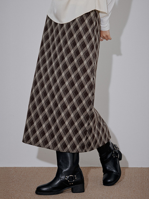 [탑걸] 클래식 체크 롱 슬릿 스커트_T521BT727