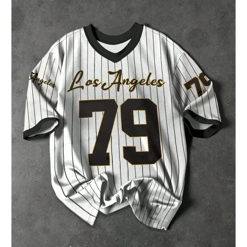 여름 신상 V넥 티셔츠 남성용 스포츠 3D 프린트 티셔츠 반팔 레트로 하라주쿠 캐주얼 통기성 땀 흡수 내구성