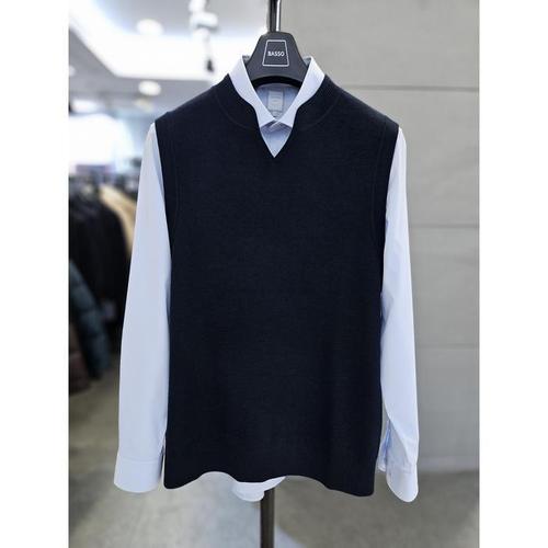 바쏘옴므 세이브존03 바쏘옴므 남자 니트 조끼 네이비 혼방 니트 베스트 WS