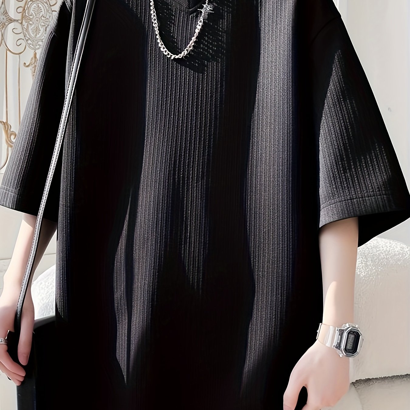 TEMU 남성 여름 단색 미드- V넥 슬림핏 속건성 반팔 티셔츠, 세로 디자인, 세탁기 사용 가능 캐주얼 티셔츠, 단색 디자인, 클래식하고 활용도 높음, 데일리 레저, 출퇴근 등에 적합