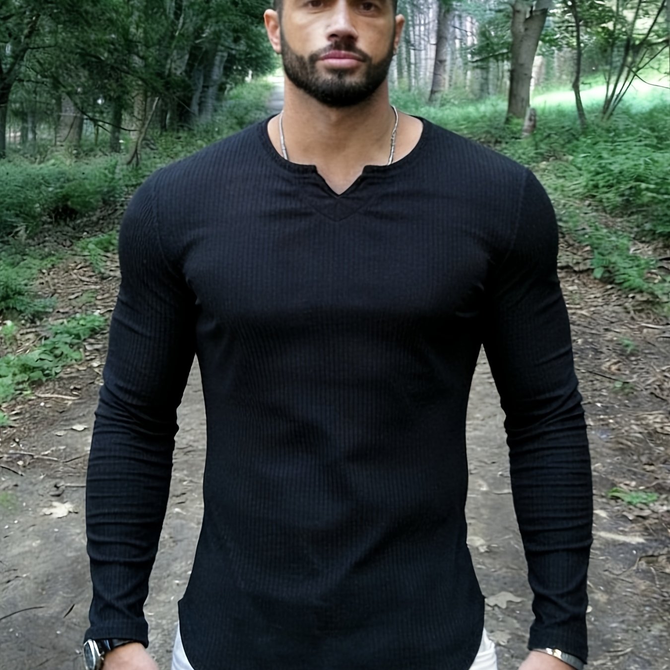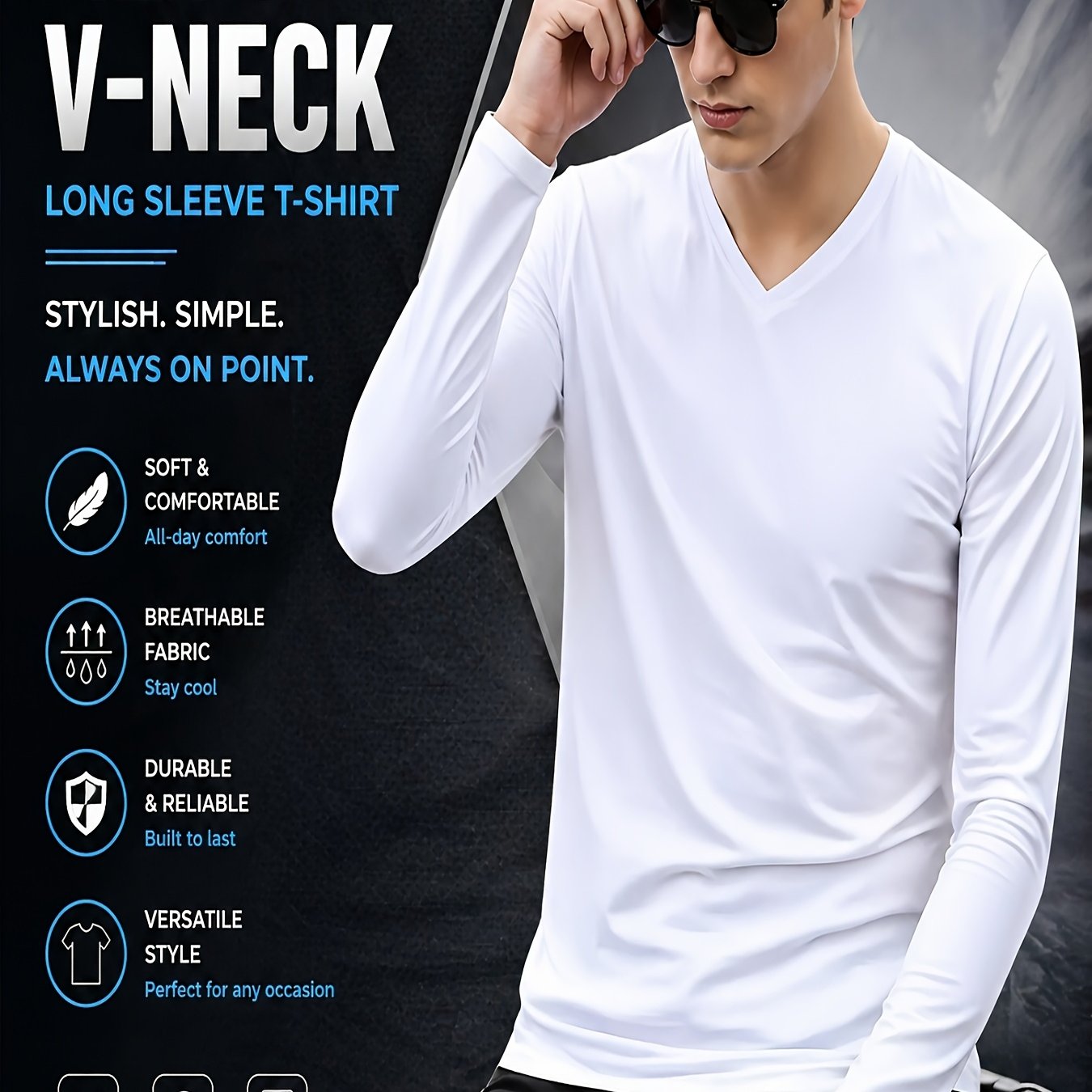 TEMU 남성 패션 솔리드 V넥 긴팔 티셔츠, 가을 겨울 필수템 | 신축성 좋음, 단색, 속건성 폴리에스터, 야외 러닝 및 운동에 적합, 세탁기 사용 가능