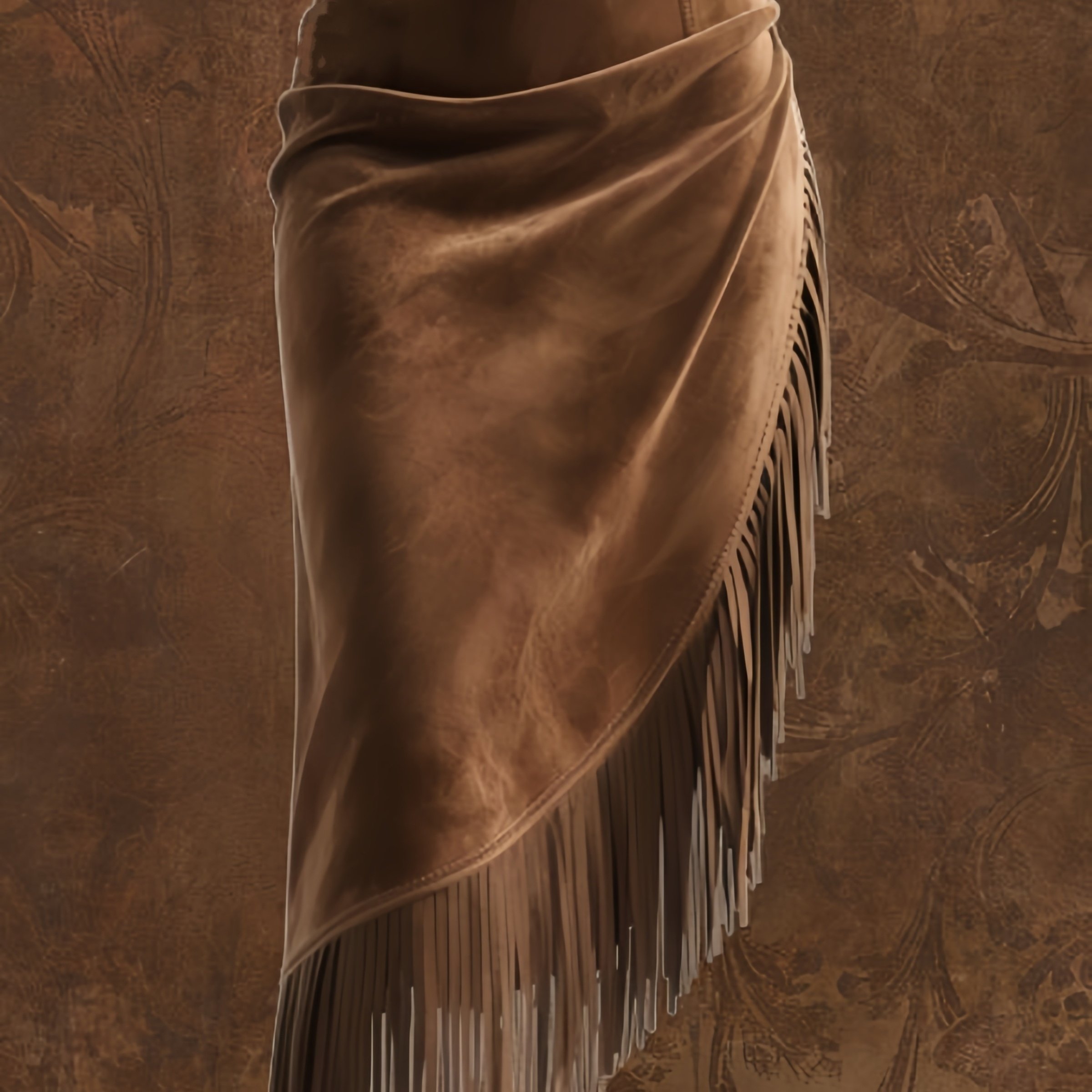 TEMU 여성 빈티지 웨스턴 스커트 - 프린지 장식의 비대칭 밑단, 웨스턴 축제, 파티, 데일리룩을 위한 롱 플로잉 스커트 - 간편한 관리, 포멀 & 캐주얼 복장, 패션 애호가, 스타일리시한 디자인, 레트로 패션, 축제 의상