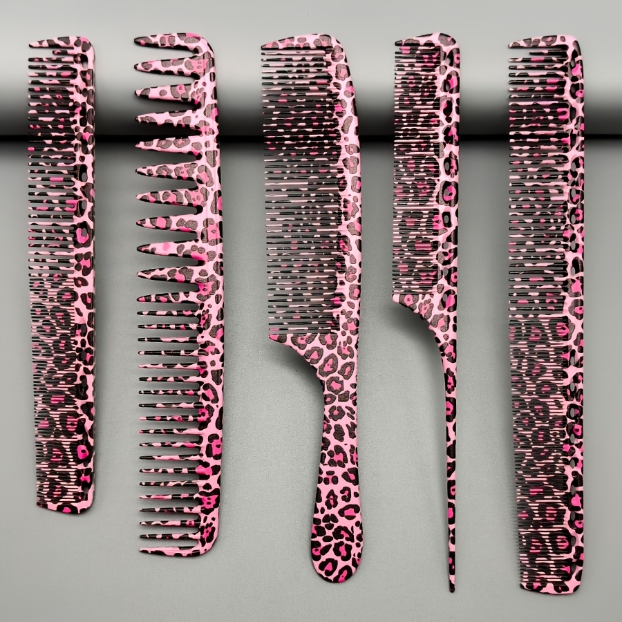 TEMU 프로페셔널 프린트 헤어 스레딩 빗 세트 5개 - 헤비듀티 PC 레진/플라스틱 디탱글링 빗, 살롱 및 바버 도구 (블랙 & 핑크 ), 스타일리스트 키트, 일반 헤어용 스레딩 및 포스트 스타일링