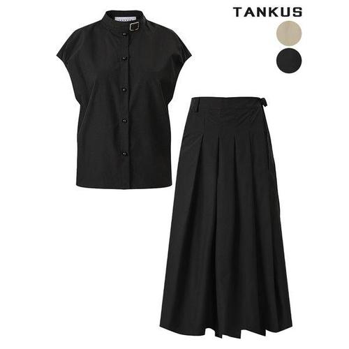 [탱커스]여성 민소매 버튼업 버클 플레어 치마바지 셋업