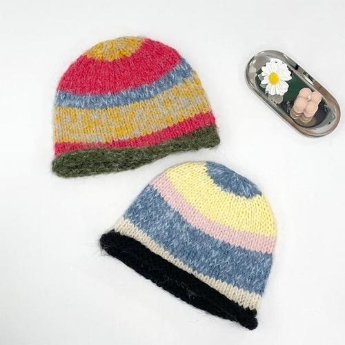 [다잇템][다잇템] 여자 울니트 스카시 키치 줄무늬 털비니 콘트라스트 모자_18959795_588872