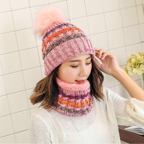 여성 겨울 방울털 니트 캡비니 넥워머 세트 기모 비니 WCD0DD6