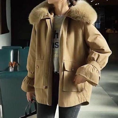 [셀러허브_여성트랜드패션]Rly 겨울 야상 사파리 털 후드 점퍼 진베이지