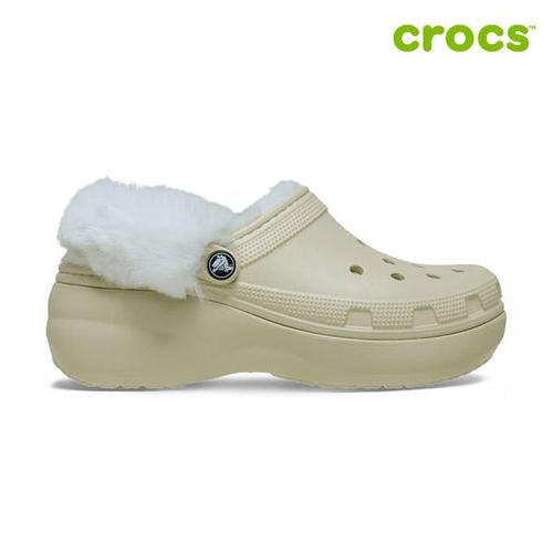 [크록스]클래식 플랫폼 라인드 퍼즈 스트랩 클로그 여성 털샌들 212854-2Y2